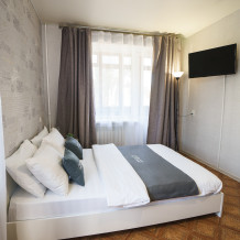 В квартире имеется всё самое необходимое для комфортного проживания: 2 двуспальные кровати и раскладное креслоWi-Fi и ЖК-телевизор. Необходимая бытовая техника. Набор ванных принадлежностей. Полностью оборудованная кухня с обеденной зоной.