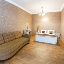 Мы позаботились о том, чтобы в квартире было всё для комфортного отдыха. К Вашим услугам мы предоставляем Wi-Fi и ЖК телевизор, набор банных принадлежностей, всю необходимую бытовую технику, посуду и столовые приборы.