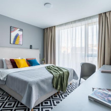Все апартаменты оснащены удобными кроватями с гипоаллергенными подушками и постельным бельем, шкафами для хранения одежды, телевизорами с плоским экраном и спутниковыми каналами. В апартаментах есть собственная ванная комната и мини-кухня со всей необходимой посудой и техникой, включая плиту, холодильник, электрический чайник, микроволновую печь. Также гости могут воспользоваться феном, утюгом и гладильной доской. Гостям предоставляются комплект постельного белья и полотенец, тапочки, гигиенические принадлежности.