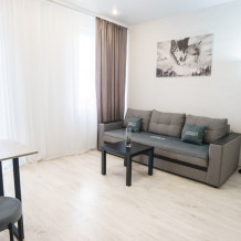 Для Вашего удобства квартира оснащена самым необходимым. Современная и удобная мебель, полноценная кухня с обеденной зоной, бытовая техника.