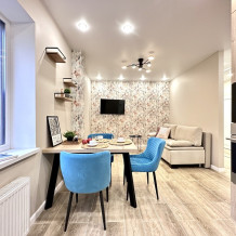 В апартаментах выполнен дизайнерский ремонт и создан стильный интерьер.