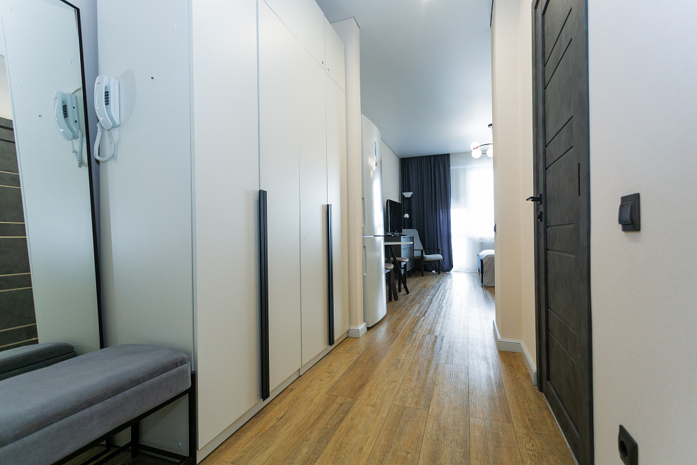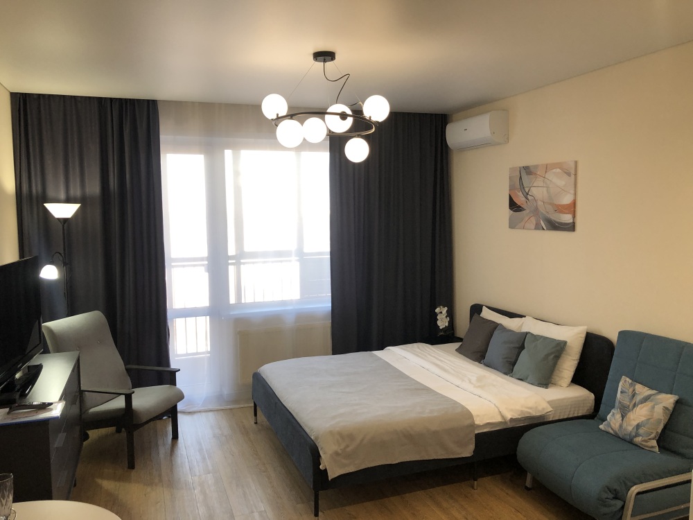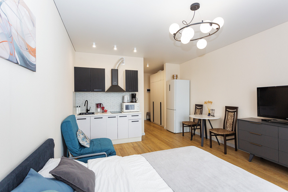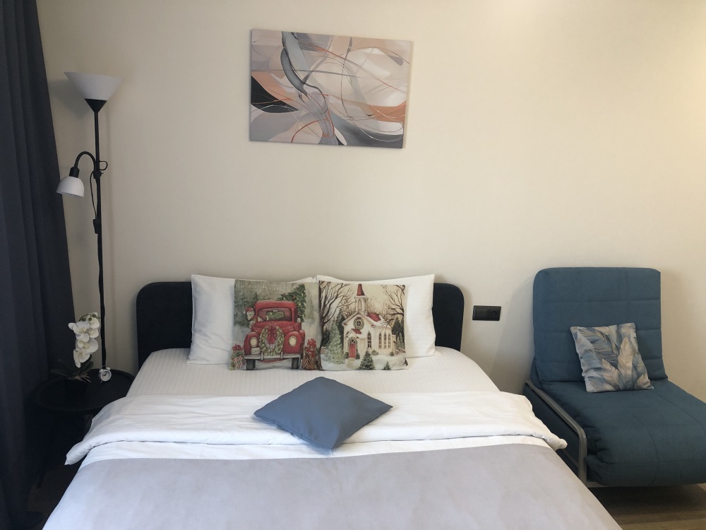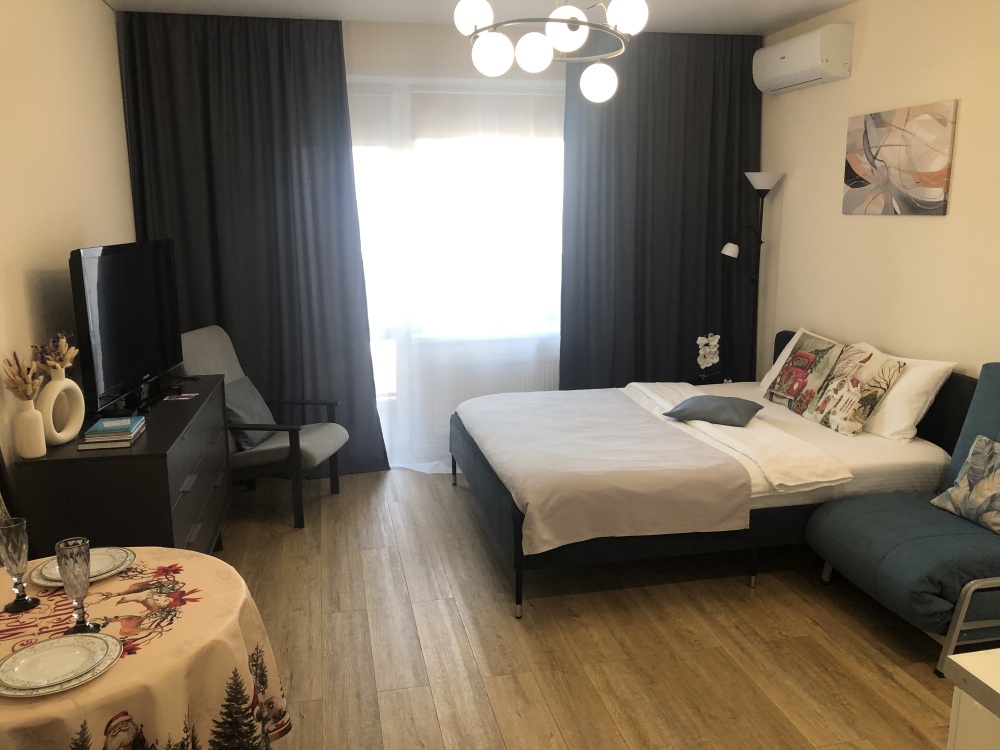 Студия для семейного отдыха, деловых поездок, романтических встреч и фотосессии, расположение позволяет добраться до всех основных достопримечательностей города за 15 минут. В квартире могут разместиться до 3 человек, большая двухспальная кровать и раскладное кресло-кровать с ортопедическим матрасом.