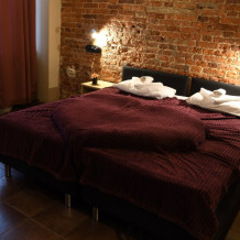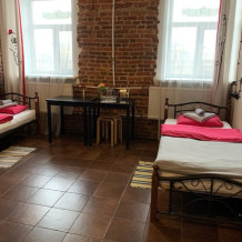 Большой лофтовый номер, окна которого выходят в тихий двор. Формат кроватей выбираем на Ваше усмотрение : две односпальные или же одна большая двуспальная. В комнате есть большой плазменный телевизор с подпиской на онлайн-кинотеатр. Каждому гостю предоставляется комплект белья: сатиновые простыни, наволочки, пододеяльники и мягкие махровые полотенца. Это единственный номер в нашей сети именно с ванной в номере