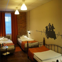 Кровати на любой вкус - две отдельные односпальные и одна двухъярусная. Каждому гостю предоставляется шкафчик на электронном замке. Он открывается с помощью индивидуальной ключ-карты, которая будет только у Вас. Свет в номере включается дистанционно с помощью пульта. Все кровати к Вашему приходу будут уже аккуратно заправлены сатиновым бельем. Помимо этого, каждому гостю будут предоставлены комплекты из 2-х мягких махровых полотенец - большого и маленького. Зоны санузлов расположены на этаже и практически у каждого номера, что означает - очередей у нас не бывает.