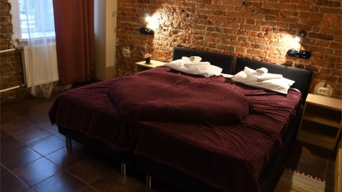 Отличный вариант для 2-х гостей. Можно выбрать формат кровати, который будет удобнее для Вас: одну большую двуспальную или же две односпальные раздельные. Помимо этого, в номере есть: шкаф, достаточное количество вешалок на каждого гостя, прикроватный столик, дистанционное включение света и белоснежное сатиновое белье. Номер с личным санузлом, где также предусмотрен фен.