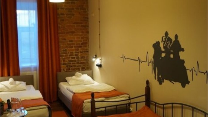 Трехместный номер с тремя раздельными кроватями. Каждому гостю предоставляются: достаточное количество вешалок; прикроватный свет, благодаря которому Вы сможете вечером читать любимые книги; комплект белья, состоящий из сатиновых простыней, наволочек, пододеяльников и мягких махровых полотенец: большого и маленького. Номер закрывается на надежный электронный замок и открывается с помощью ключ-карты, который Вам дадут наши великолепные администраторы на ресепшене. Общие душевые и туалеты находятся в непосредственной близости с номером - у нас не бывает очередей.