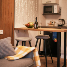 Квартира с новым ремонтом полностью укомплектованная всем необходимым для комфортного отдыха: кухня с техникой, посудой; барная стойка-стол, чайник, микроволновка, стиральная машина, электрическая плита, фен, уборочный инвентарь; полотенца, постельное бельё гостиничного класса люкс белое, шампунь-кондиционер выкладывается единоразово на весь период проживания, тапочки, утюг по запросу. Автономное отопление. Бесплатная парковка по запросу огороженная на территории дома.