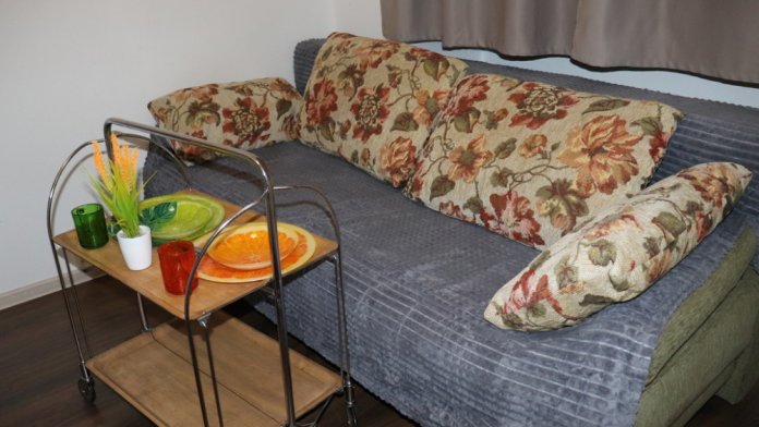 Студия №3 с двуспальным раскладным диваном у станции МЦД-D4 «Железнодорожная»: 1-й этаж 2-этажного жилого дома.