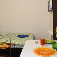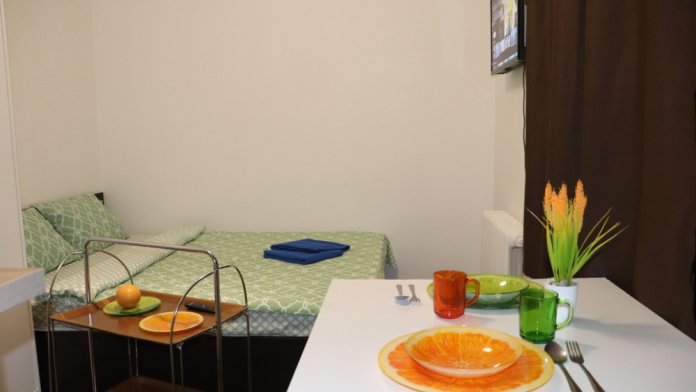 В комнате двуспальный раскладной диван, обеденный стол со стульями, встроенная кухня с мебелью, техникой, посудой и столовыми приборами. Интернет Wi-Fi, ЖК ТВ, глаженное постельное белье и полотенца. Санузел с душевой кабиной и стиральной машиной.