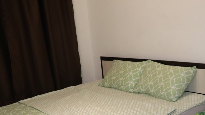 В комнате двуспальная кровать 1,6Х2м, обеденный стол со стульями, встроенная кухня с мебелью, техникой, посудой и столовыми приборами. Интернет Wi-Fi, ЖК ТВ, глаженное постельное белье и полотенца. Санузел с душевой кабиной и стиральной машиной.