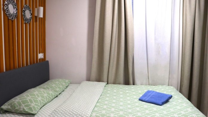 В комнате двуспальная кровать, обеденный стол со стульями, встроенная кухня с мебелью, техникой, посудой и столовыми приборами. Интернет Wi-Fi, большой SMART-TV на 150 каналов, глаженное постельное белье и полотенца. Санузел с душевой кабиной и стиральной машиной.