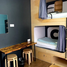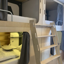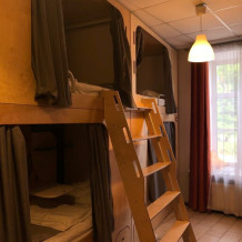 Рады пригласить прекрасных дам в обновленный женский номер: если Вам будет удобнее на первом ярусе слипбоксов, пожалуйста, выберете эту позицию для бронирования. Для каждой гостьи внутри кровати есть множество полочек для личных вещей, шкафчик на электронном замке с розеткой внутри (чтобы можно было оставить на зарядке ценный гаджет в полной безопасности). Верхнюю одежду и обувь можно разместить в большом шкафу, а временно ненужный чемодан - в специальном отсеке под кроватью.