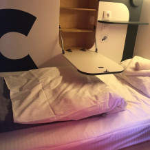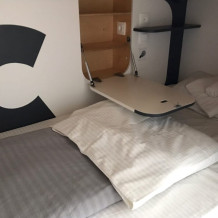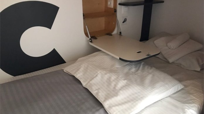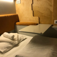 Каждое спальное место снабжено розетками и широким откидным столиком.