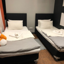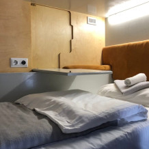 В отдельном номере наши гости найдут всё, что нужно для комфортного отдыха вдвоем или в одиночку: входная дверь надежно закрывается электронным замком, для багажа каждая комната оборудована удобным шкафом. Если не хочется пользоваться общей кухней - можно с удобством поужинать в комнате за столиком, а потолочное освещение можно отрегулировать от яркого для чтения до приглушенно-романтического при помощи сенсорного датчика света. Обязательно укажите при бронировании, в каком виде подготовить для Вас кровати-трасформеры: две отдельные кровати или просторное двуспальное ложе.