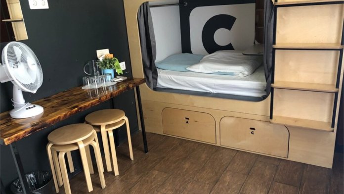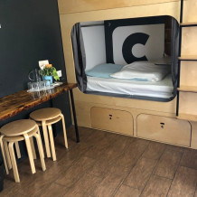 Внутри каждого слипбокса гостя ожидает индивидуальный источник освещения; вентиляция; рейл для одежды или полотенец; шкафчик, открывающийся при помощи ключ-карты и удобный тем, что внутри него есть дополнительная розетка.