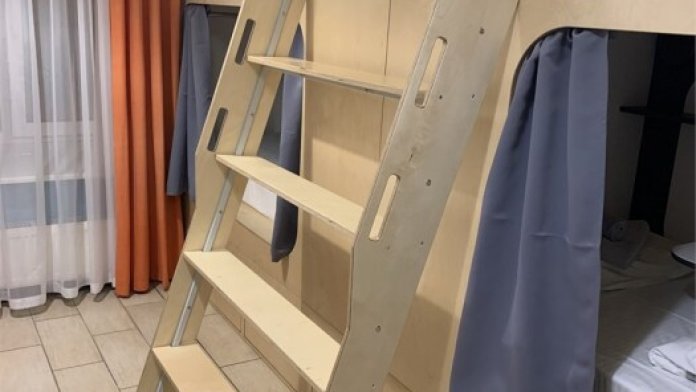 Рады пригласить прекрасных дам в обновленный женский номер: выбирая эту позицию для бронирования, обратите внимание, что Вы бронируете верхний ярус слипбоксов, для которого предусмотрена широкая удобная лестница. Внутри каждой кровати есть множество полочек для личных вещей, шкафчик на электронном замке с розеткой (чтобы можно было оставить на зарядке ценный гаджет в полной безопасности). Верхнюю одежду и обувь предлагаем разместить в большом шкафу, а временно ненужный чемодан - в специальном отсеке под кроватью.