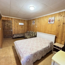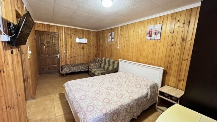 Четырехместные комнаты со всеми удобствами. Кондиционер, холодильник, телевизор, Wi-Fi и санузел с душевой в каждом номере. Зона отдыха у каждого номера. Комнаты на втором этаже имеют выход на балкон.