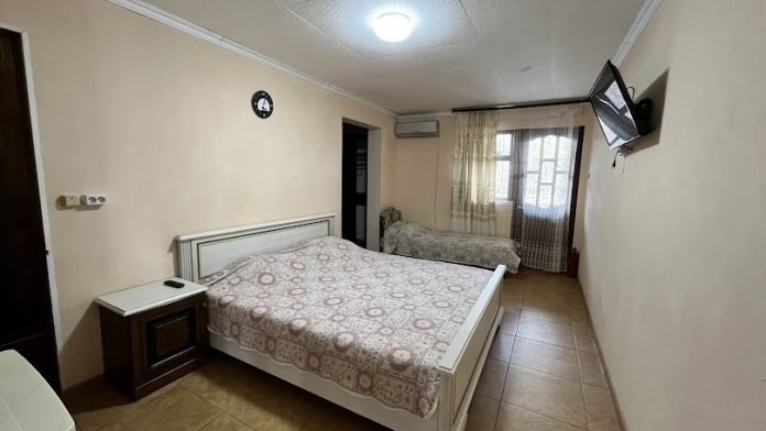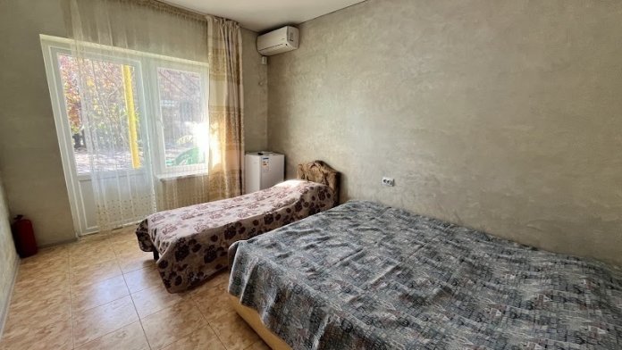 Трехместный номер со всеми удобствами, санузлом, кондиционером, холодильником и телевизором.