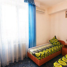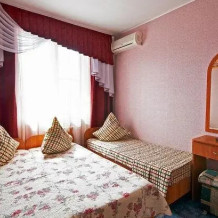 Каждый номер оборудован комфортабельной мебелью и современной техникой. Из оснащения представлены: кондиционер для самостоятельного настраивания температуры, телевизор для просмотра интересных программ, удобное спальное место и ванная комната. Во всех номерах работает скоростной Wi-Fi.
