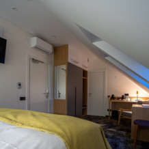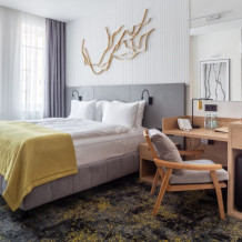 Комфортный номер с видом на внутренний тихий дворик. Современный дизайн номера в сочетании со всеми условиями высоко сервиса. Номер, оснащенный всем необходимым для отдыха и работы. Удобный ортопедический матрас высотой 30 см, позволит Вам насладится комфортным сном.
