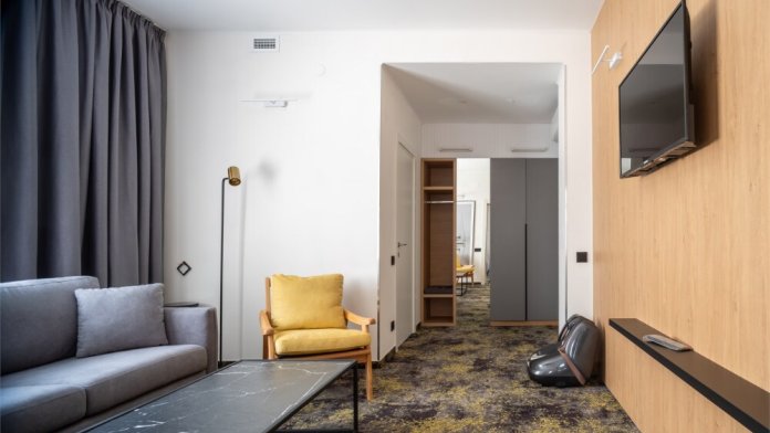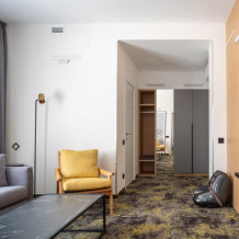 Просторный двухкомнатный номер с двумя двуспальными кроватями или две односпальных. В номере могут проживать до 4 гостей. К услугам гостей: интернет Wi-Fi, телевизор, телефон, индивидуальная система кондиционирования, кофемашина Nespresso, фен, халат, расширенный набор гигиенических принадлежностей премиум-класса.