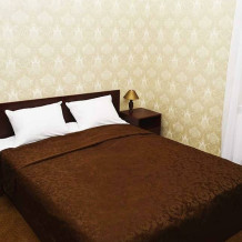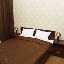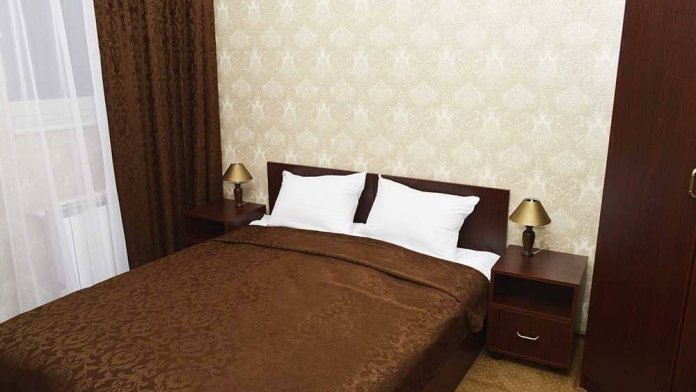 Светлые номера, оформлены в классическом стиле в теплых тонах. Все они оборудованы телевизором, кондиционером и собственной ванной комнатой.