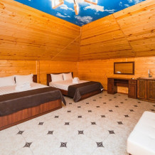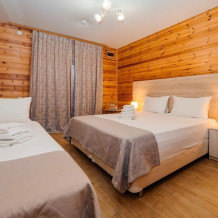 Просторный и уютный двухкомнатный номер в деревянном корпусе площадью 30 кв.м., состоящий из двух изолированных спальных комнат. В одной комнате двуспальная кровать, во второй - 2 односпальные кровати. Номер расположен на 2 этаже.