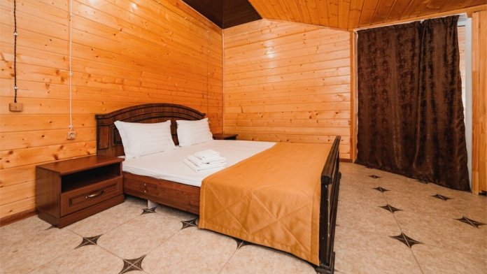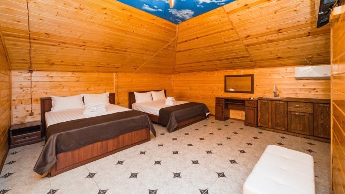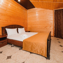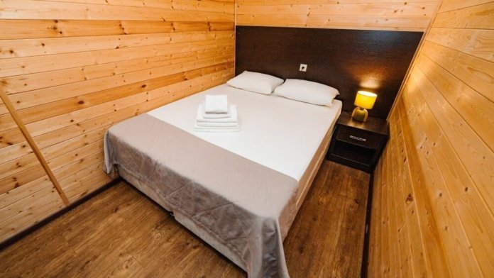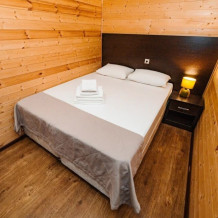 Однокомнатный номер из натурального дерева площадью 15 кв.м. с двуспальной кроватью или 2 отдельными кроватями. Номера расположены на 1 и 2 этажах.