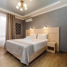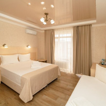Трехместный номер 20 кв.м. - это одна комната, представленная в современном классическом интерьере. Данные номера находятся на 2-м, 3-м, 4 -м этажах, окна выходят во двор.