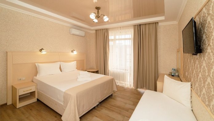 Отель готов предложить 75 комфортабельных номеров различных категорий. Каждый номер имеет индивидуальный дизайн и оборудован всем необходимым для комфортного отдыха: телевизор, Wi-Fi, холодильник, кондиционер. В ванной комнате предоставляется фен, туалетные и косметические принадлежности: мыло, шампунь, гель для душа, шапочки для душа, зубной набор, комплект полотенец.