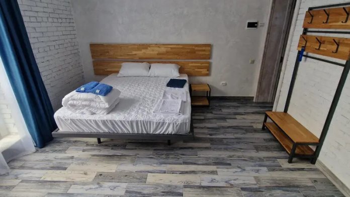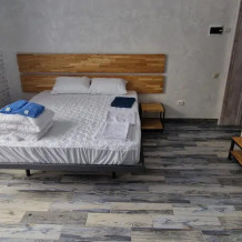 Апартаменты находятся на территории частного домовладения. Комнаты выполнена в модном лофт-стиле. Имеется холодильник, чайник, инверторная панель, вся посуда для приготовления пищи, микроволновая печь, душ, туалет, раковина, фен, сплит-система, кровать 160×200, диван-кровать 120-190, очень удобный, во дворе бассейн взрослый с отдельной детской зоной, лежаки для загара, зелёная территория.