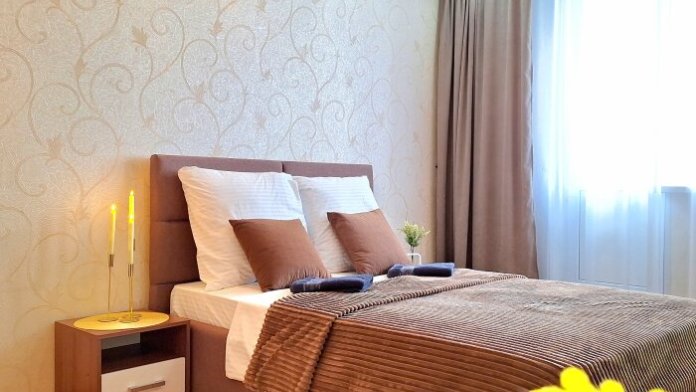 Квартира посуточно с большой двуспальной кроватью и раскладным диваном.