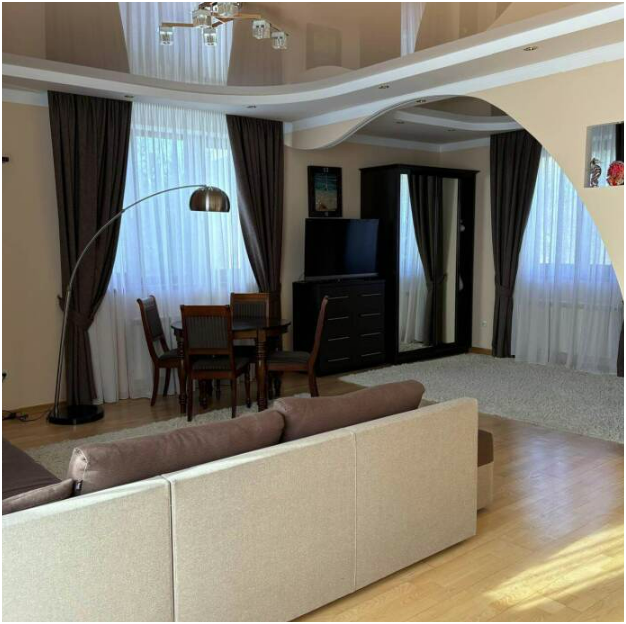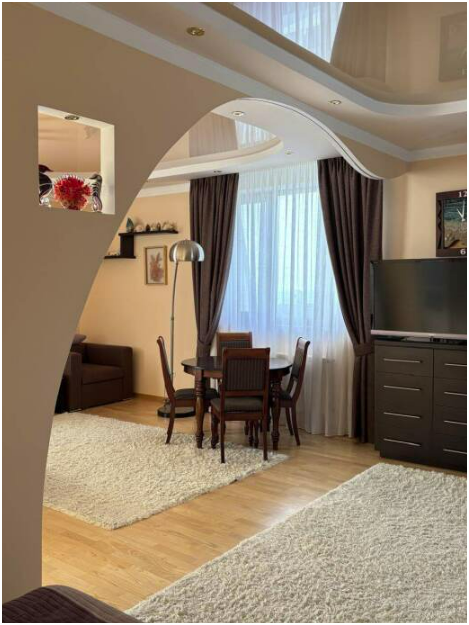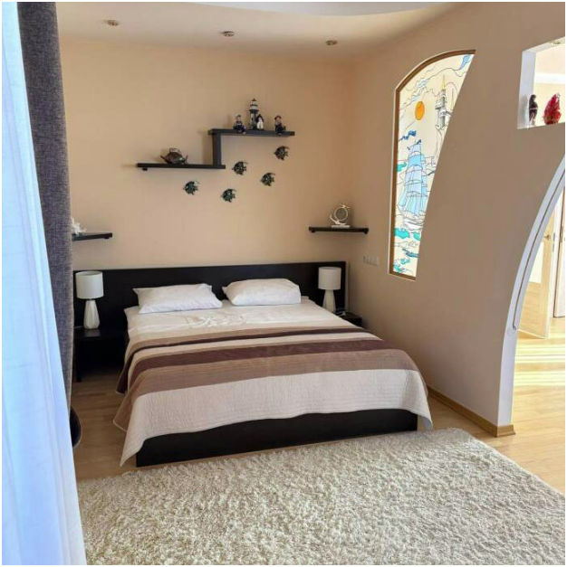 просторные апартаменты, также есть прикроватные тумбочки,платяной шкаф, стол, стулья,СВЧ,индукционная печь,вытяжка, обеденный гарнитур.