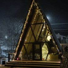 Hа террасе имеется: индивидуальный бассейн диаметром 3,5 м с горячей термальной водой. Температура воды может быть отрегулирована по Вашему запросу. Мангальная зона оборудована всем необходимым для приготовления шашлыка: угли, розжиг, решетка, шампуры включены в стоимость проживания.
