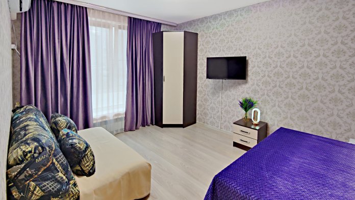 Апартаменты полностью оборудованы, есть все необходимое: кровать с комфортным ортопедическим матрасом, удобный раскладной диван, бесплатный Wi-fi, кабельное и смарт ТВ, вся необходимая посуда, чай, сахар, соль, перец, масло. Шампунь, гель для душа, мыло. Бытовая техника: кондиционер, водонагреватель, стиральная машинка, микроволновка, плита с духовкой, эл.чайник, фен, гладильная доска, сушилка, утюг.