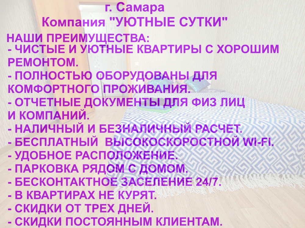 Обязательная смена постельного белья и полотенец. Ваша абсолютная уверенность в безопасности квартиры для Вашего здоровья.
