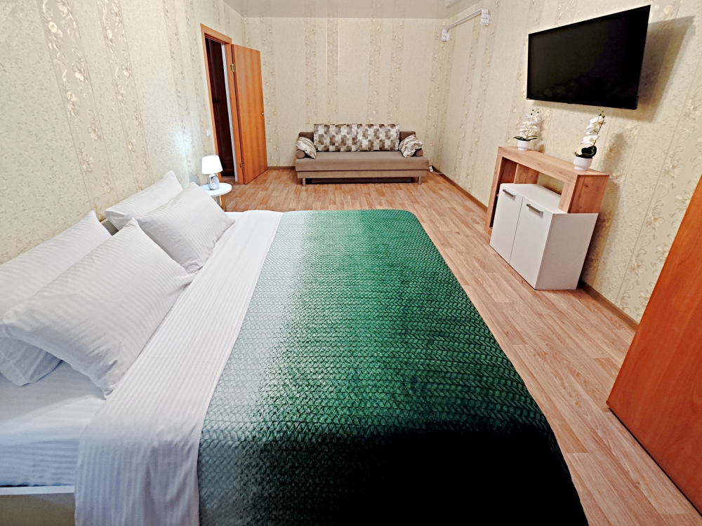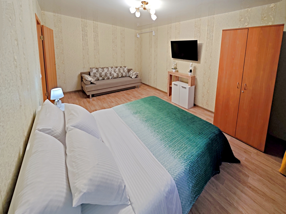 Апартаменты полностью оборудованы, есть все необходимое: Кровать с комфортным ортопедическим матрасом, -удобный раскладной диван, бесплатный Wi-fi, кабельное и смарт ТВ, вся необходимая посуда, чай, сахар, соль, перец, масло. Шампунь, гель для душа, мыло. Бытовая техника: водонагреватель, стиральная машинка, микроволновка, плита с духовкой, эл.чайник, фен, гладильная доска, сушилка, утюг.