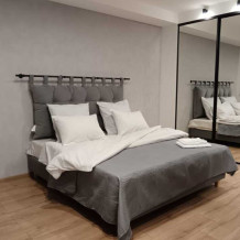 Апартаменты предлагают: удобную кровать king-size, полный набор кухонной посуды, современные бытовые приборы, SMART TV и Яндекс станцию. Все необходимые гигиенические средства. Возможность размещения до 2 человек. Бесплатный Wi-Fi 100 Мбит/с.