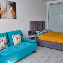 - Спальное место: удобная кровать с ортопедическим матрасом и раскладной диван.