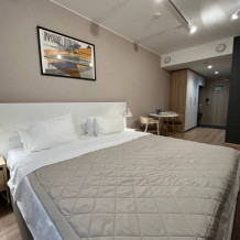 В нашем апарт-отеле Вы найдете кафе на первом этаже, магазин, вендинговые аппараты и банкоматы. Все для вашего удобства и комфорта! Для тех, кто планирует приехать на автомобиле, предусмотрен подземный паркинг, работает Wi-Fi, возможно заказать уборку от отеля.