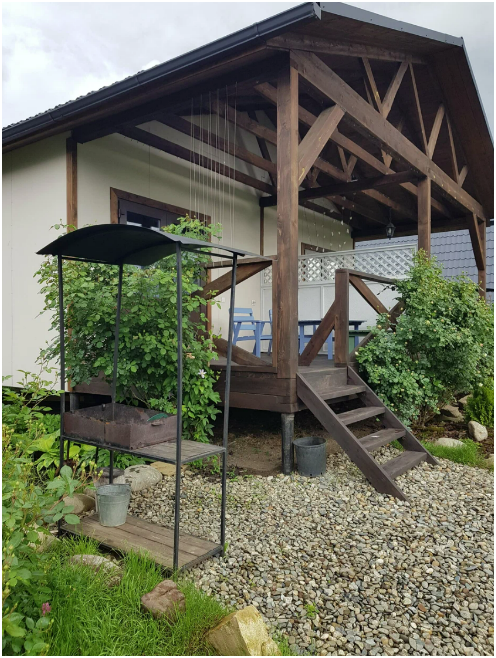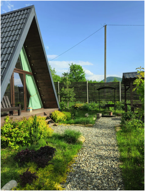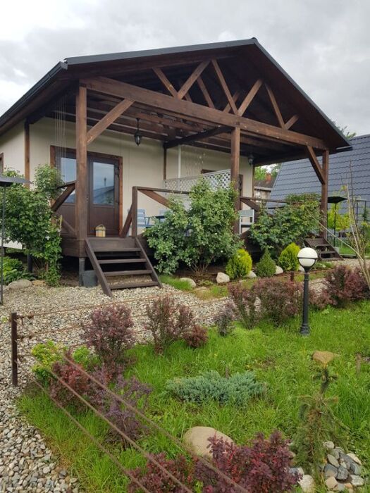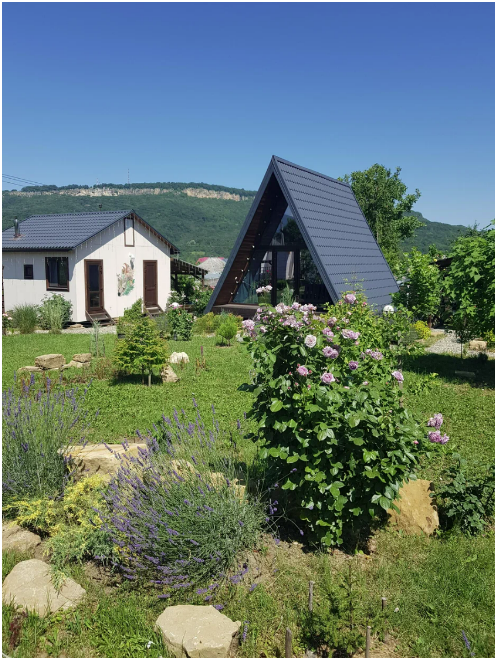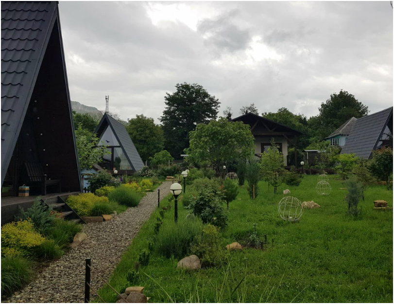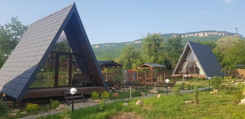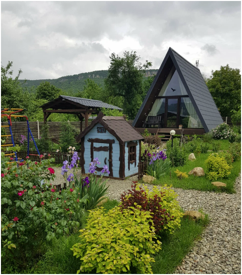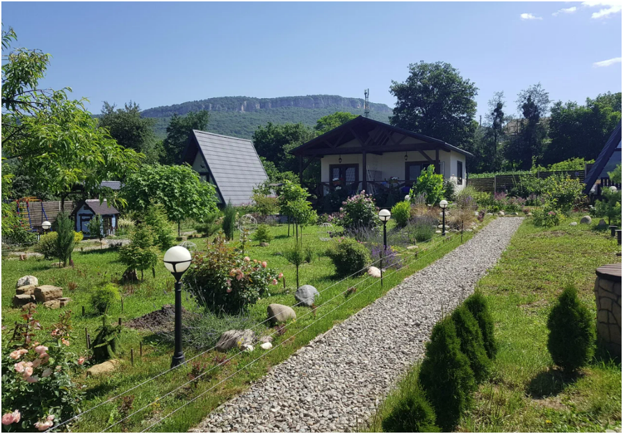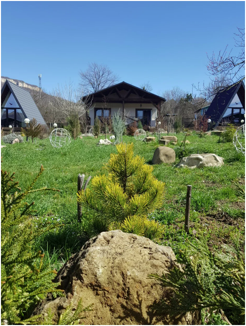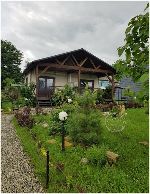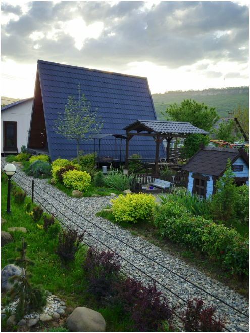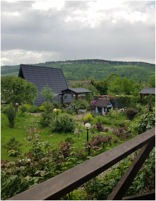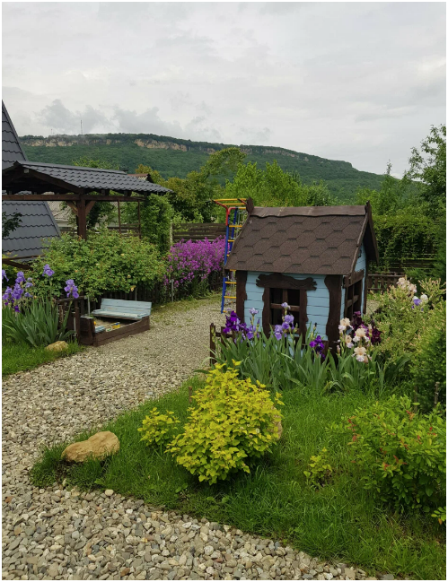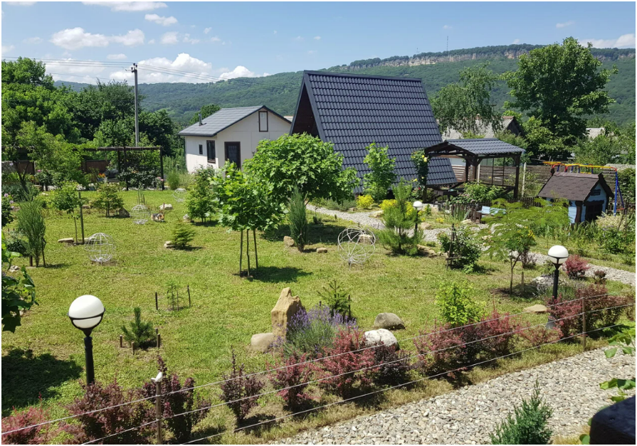 У каждого домика есть своя беседка и мангал. На территории баня на дровах (платно). Есть детская площадка. Предоставляются места для парковки. По согласованию с хозяевами возможно размещение с животными. Из окон открывается вид на сад с розами и горы. Рядом находятся старый каменный мост, водопады и Савранская канатная дорога.