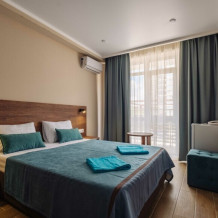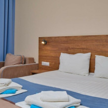 Наши номера создают ощущение пространства и наполненности светом и воздухом, оформлены в основном в деловом стиле. Просторные номера с двуспальной кроватью и ванной комнатой, кондиционером и возможностью добавления дополнительных мест для младших членов семьи.