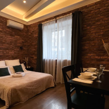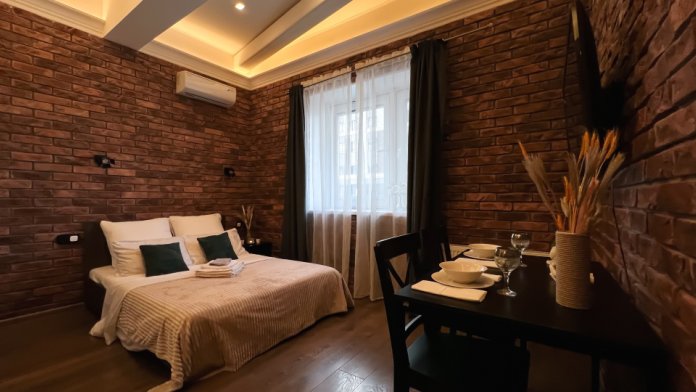 - Дизайн: современный дизайн с элементами кирпичной кладки, создающими уютную атмосферу.