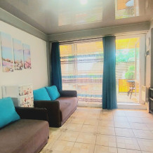 Студия оборудована всем необходимым для комфортного проживания: для сна 2 удобных 2-спальных дивана, вместительный шкаф, кондиционер, тв, интернет, стиральная машинка, кухня с посудой, индукционной варочной поверхностью, микроволновкой, большим холодильником, фен, утюг, постельные принадлежности.