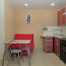 Односпальная и двухспальная кровати кресло, шкаф стулья, прикроватные тумбочки, стол, вешалка, зеркало, кухонный гарнитур, обеденная зона.