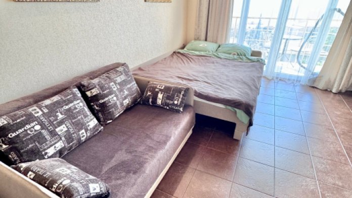 Студия с балконом и видом на море в красивом жилом комплексе.