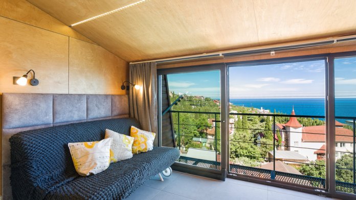 Сдается квартира-студия в гостевом доме «Лунный камень» на шестом этаже с шикарным панорамным видом на море.