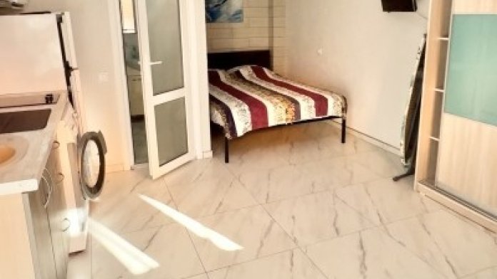 В номере имеется: стиральная машина, кухня с посудой, микроволновкой, варочной поверхностью и большим холодильником, тв, интернет, утюг, фен, постельное и полотенца.