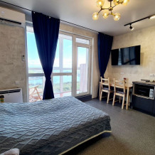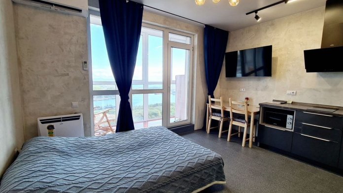 Уютная квартира с витражными окнами и лоджией в ЖК Улисс 360. Удобное расположение дома. До пляжа Патрокл 10 минут. До о. Русский дорога занимает 15 минут, до центра города 15 минут.
