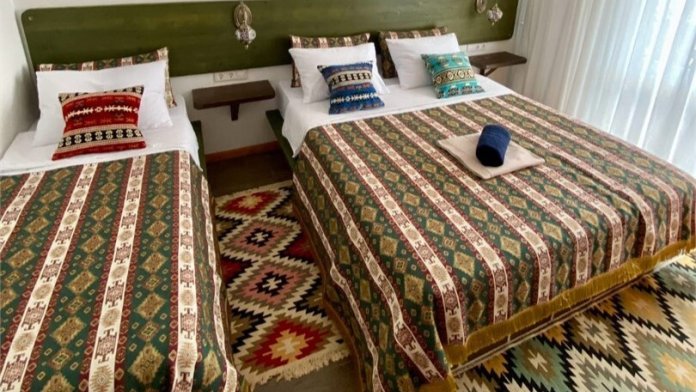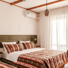 В номере одна большая И одна полутороспальная кровати, балкон с панорамными окнами, душевая с туалетом, кондиционер, холодильник, спутниковое телевидение, сейф, банные и пляжные полотенца, фен, косметика для личной гигиены премиум класса, сланцы для взрослых, wi-fi, электронный замок на входной двери.